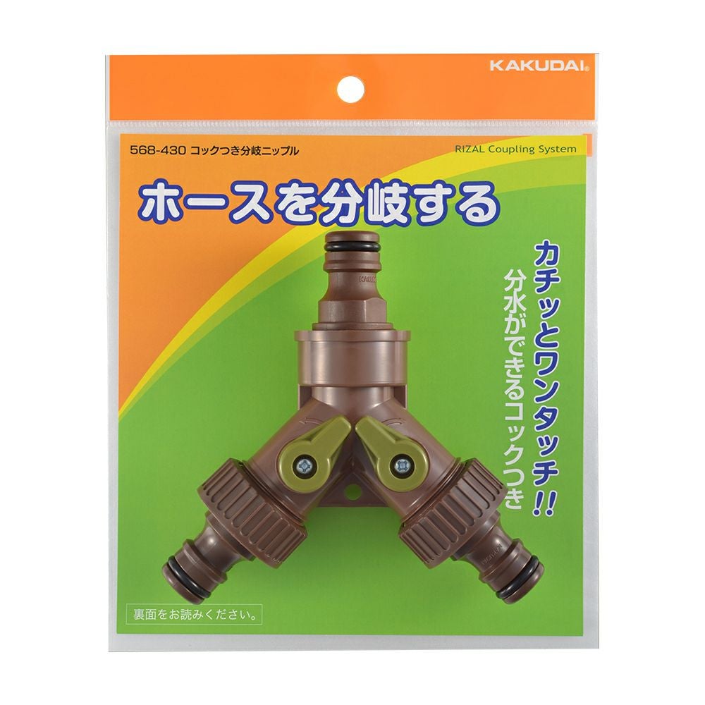 ホーセンドの付いたホース同士を二方向に分水する事が出来る散水接手です。