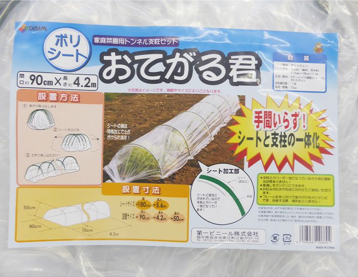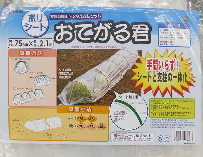 他の画像を見る トンネル支柱 ビニールトンネル 家庭菜園 DAIM おてがる君 ポリシート 90cm×420cm×50cm (離島・沖縄発送不可) 販売価格 ¥ 3,500 税込 カートに入れる お気に入りに登録する (0)