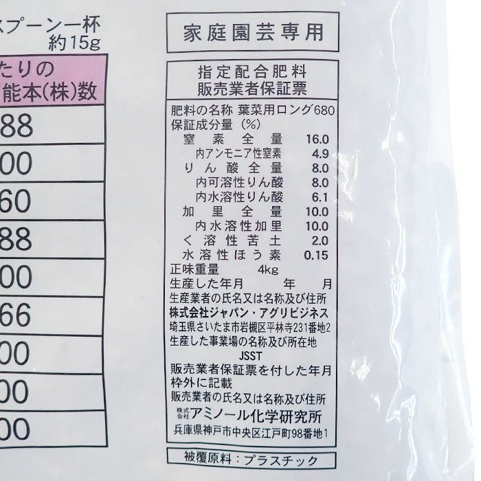 他の画像を見る アミノ酸・腐植酸配合 野菜元肥 家庭菜園 ガーデニング タキイ種苗 葉菜用 有機入りロング肥料 16-8-10-2 内容量4kg ホウ素入り 販売価格 ¥ 3,300 税込 カートに入れる お気に入りに登録する (0)