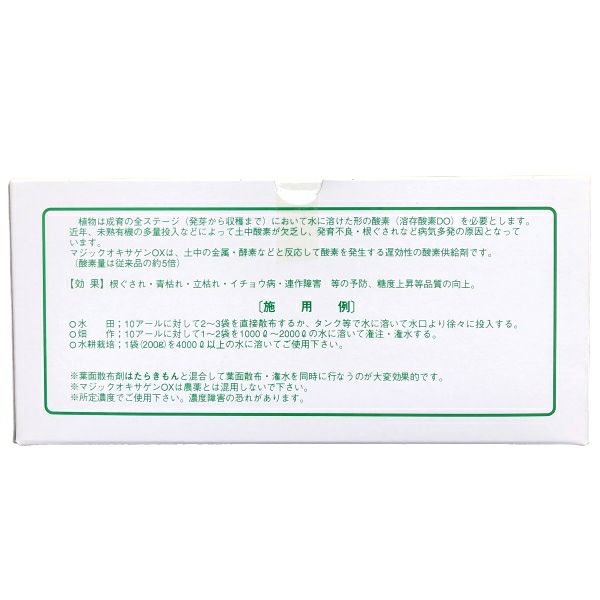 他の画像を見る 【酸素量5倍ハイパワー効果】【病害予防・糖度など品質向上】 植物用酸素供給剤 マジックオキサゲンOX 200g×5袋 販売価格 ¥ 3,344 税込 カートに入れる お気に入りに登録する (0)
