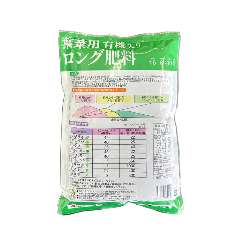 他の画像を見る アミノ酸・腐植酸配合 野菜元肥 家庭菜園 ガーデニング タキイ種苗 葉菜用 有機入りロング肥料 16-8-10-2 内容量1kg ホウ素入り 販売価格 ¥ 1,080 税込 カートに入れる お気に入りに登録する (0)