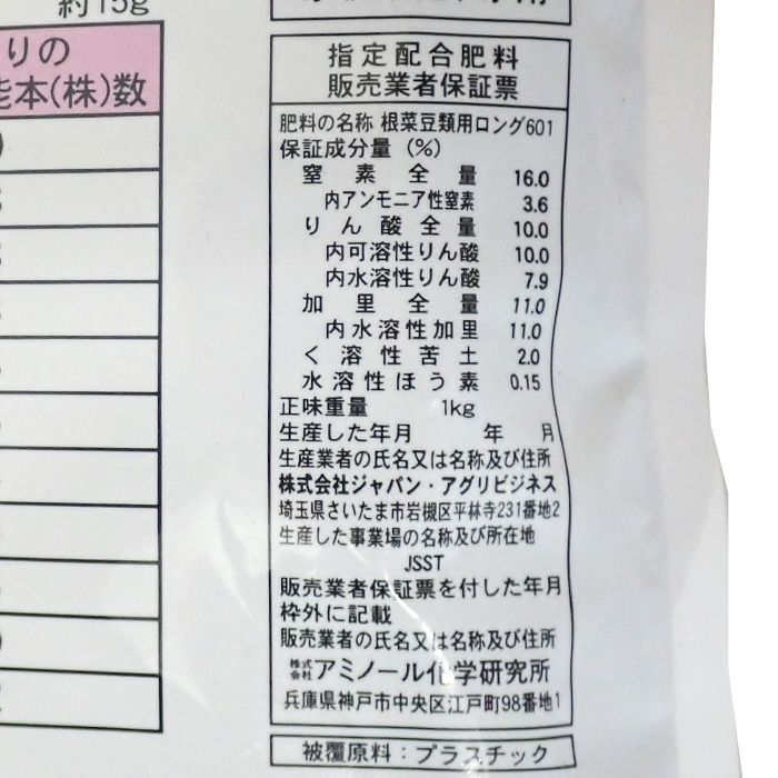 他の画像を見る アミノ酸・腐植酸配合 野菜元肥 家庭菜園 ガーデニング タキイ種苗 根菜用 有機入りロング肥料 16-10-11-2 内容量1kg ホウ素入り 販売価格 ¥ 1,078 税込 カートに入れる お気に入りに登録する (0)