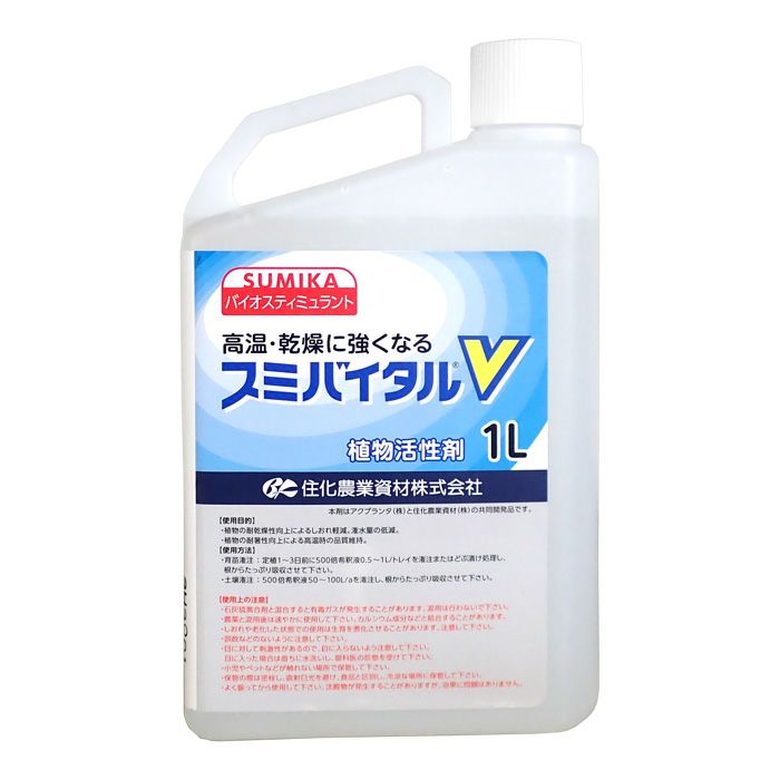 他の画像を見る 高温・乾燥耐性、安定活着!育苗/定植期におすすめ スミバイタルV 1L (1.35kg) 住化農業資材 バイオスティミュラント BS資材 販売価格 ¥ 7,865 税込 カートに入れる お気に入りに登録する (0)