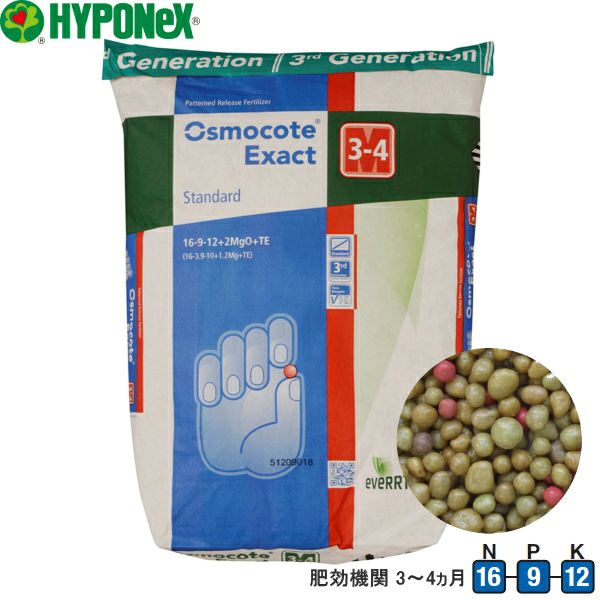ハイポネックス 緩効性肥料(コーティング肥料) オスモコートエグザクト スタンダード 16-9-12 肥効期間3~4ヵ月 25kg