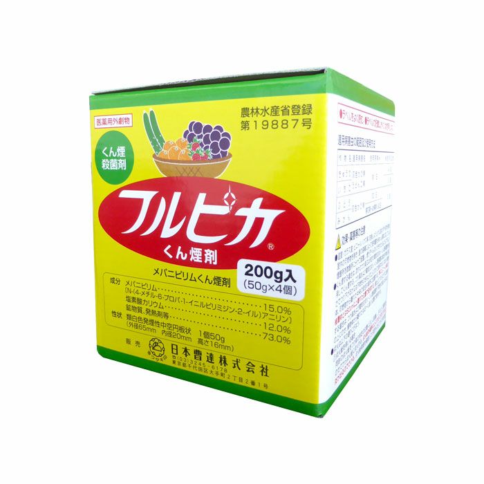 ▼予防(早めの防除)を重点に行ってください。 発生前や発生初期から予防的に早めにくん煙することで、優れた防除効果を発揮します。 ▼連続使用はさけてください。 耐性菌対策のため、本剤の連続使用はさけ、作用性の異なる薬剤とのローテーションで 使用してください。 ▼耕種的な防除を併用してください。 灰色かび病を防除するには、薬剤防除のみに頼ることなく、病害が発生しにくい環境を 作ることが重要です。フルピカの防除効果は、耕種的な防除対策と併用することにより 一層高まります。