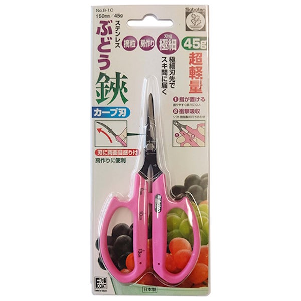 サボテン ぶどう鋏 カーブ刃 160mm 品番:B-1C フッ素加工
