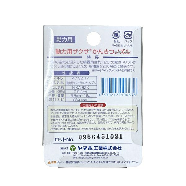 他の画像を見る ヤマホ工業 バスタノズルLV35 人力用・バッテリー用カバー (散布幅 約65cm) 除草剤バスタ専用ノズル 販売価格 ¥ 2,180 税込 カートに入れる お気に入りに登録する (0)