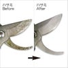 ・滑り・開き・切味の悪い刃物(ノコ・ハサミ・鎌・刈込鋏)などの刃物を樹液(ヤニ・シブ)を除去することで本来の切味を復活させます。