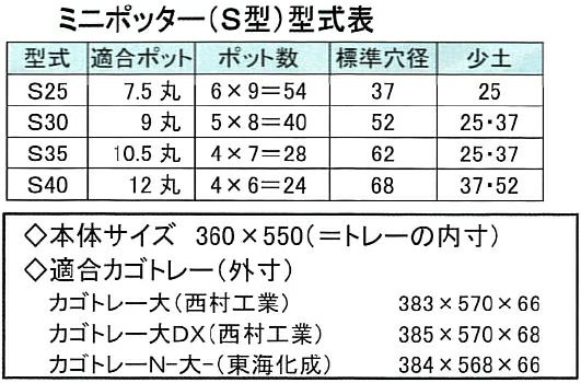 他の画像を見る 【槍木産業】【送料無料】【代引き不可】 槍木産業 育苗箱用ポット連続土詰器 ミニポッター SR型 標準板タイプ 販売価格 ¥ 10,780 税込 在庫切れ 詳細を見る お気に入りに登録する (0)