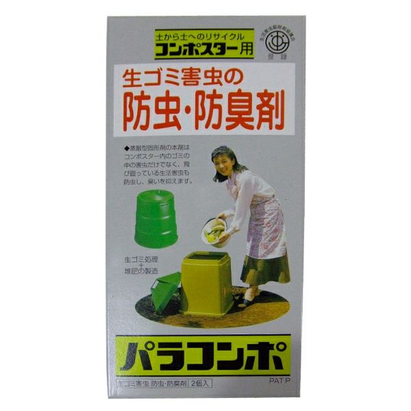 ●パラコンポは、生ゴミ処理時に発生する不快な生活害虫の発生を防ぐと共に嫌な臭いを防ぐ、生ゴミ処理器専用の防虫・防臭剤です。