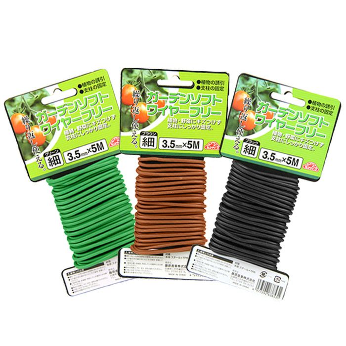 ・植物や野菜にキズをつけずに支柱にしっかり固定できるソフトワイヤーです。