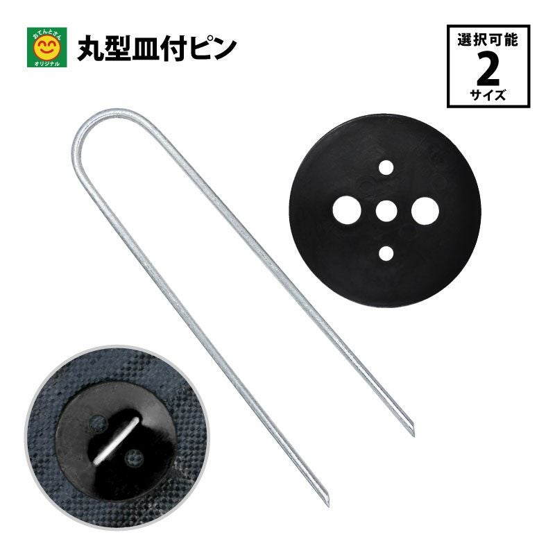 - 丸型皿付ピン 黒 ピンの長さ:15cm/20cm 入数:10本/100本/200本 黒丸付き防草シート押さえピン