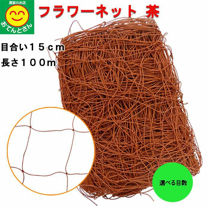 - おてんとさん フラワーネット 茶 目合い:15cm 長さ:100m 太さ:400D×24本撚り 目数を選択 3目/4目/5目/6目