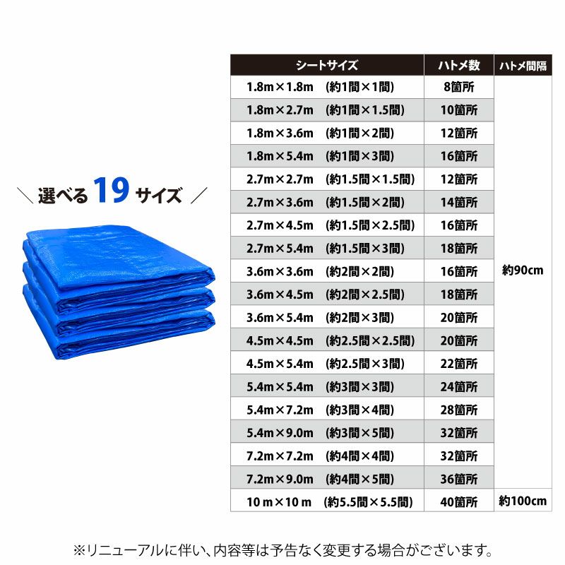 スーパーマルチシート #3000 19サイズ選択 ブルーシート 厚手 約90cm~100cmピッチのハトメ付