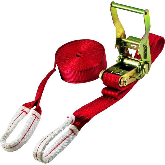 ・ラチェット式のバックルで、強い締め付けが簡単にできるベルト荷締機です。