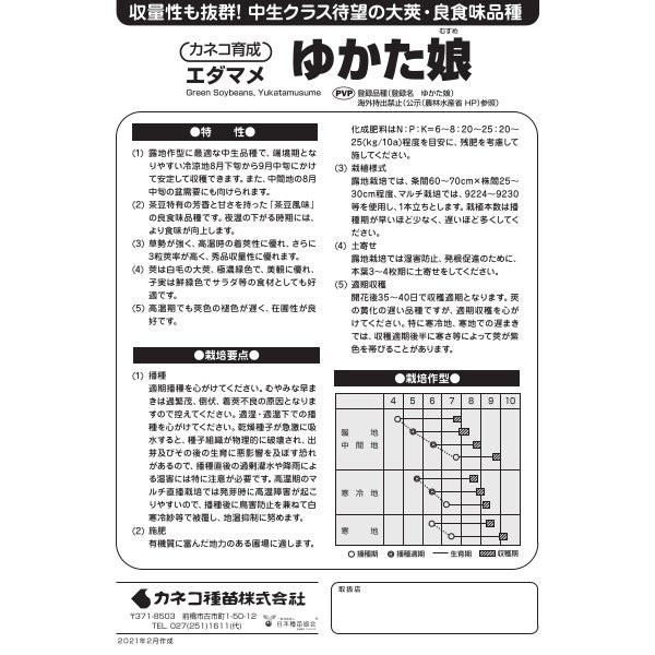 【枝豆】ゆかた娘(2000粒詰)【カネコ種苗】【PVP商品】