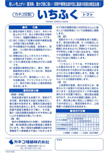 【大玉トマト】いちふく【カネコ種苗】【PVP商品】