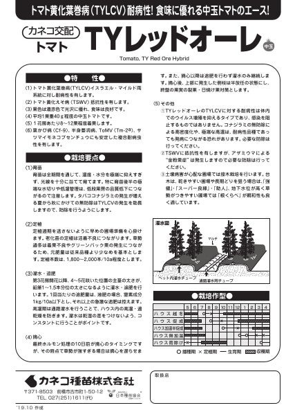 【中玉トマト】TYレッドオーレ【カネコ種苗】【PVP商品】