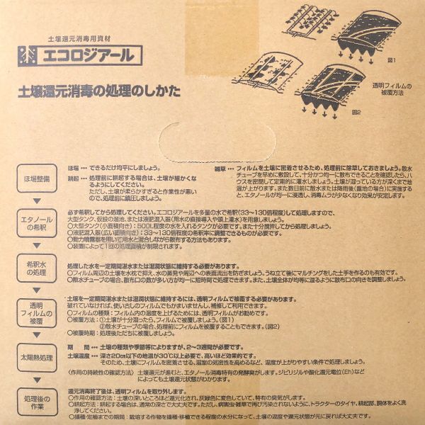 他の画像を見る 【連作障害対策】【農薬ではないため人・環境にやさしい】 低濃度エタノール 土壌還元消毒資材 エコロジアール 20L 販売価格 ¥ 4,500 税込 カートに入れる お気に入りに登録する (0)