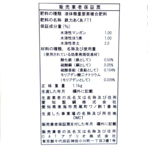 他の画像を見る 鉄イオンとマグネシウムイオンを安定供給し光合成促進 液体微量要素複合肥料 鉄力トレプラス 1L 葉面散布 潅注処理 2価鉄供給材 販売価格 ¥ 3,950 税込 カートに入れる お気に入りに登録する (0)