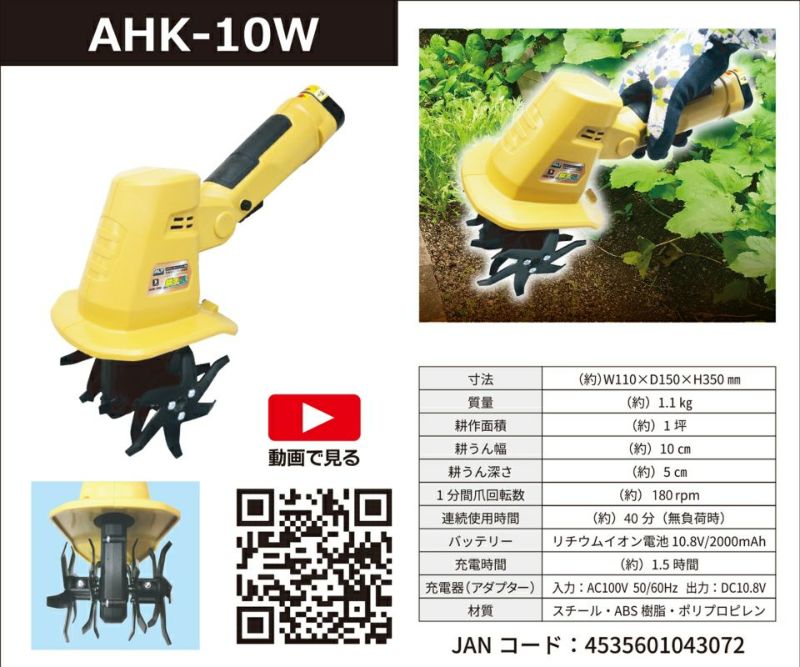 他の画像を見る 割引対象外 代引不可 日時指定不可 【家庭菜園・園芸に最適】【コンパクトで手軽に使える充電式】 アルミス 家庭用 充電式耕運機 耕す造 AHK-10W 販売価格 ¥ 7,980 税込 カートに入れる お気に入りに登録する (0)