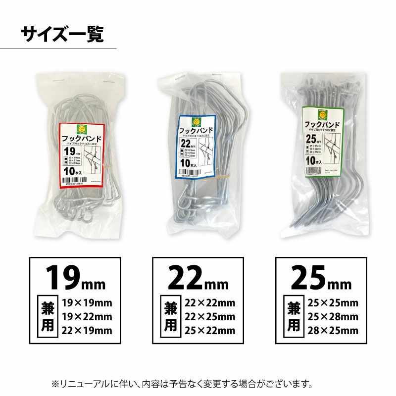 他の画像を見る ハウスパイプや支柱同士をクロスに固定! フックバンド 19mm兼用/22mm兼用/25mm兼用 10本入 3サイズ選択 販売価格 ¥ 240 税込 〜 販売価格 ¥ 税込 詳細を見る お気に入りに登録する (0)
