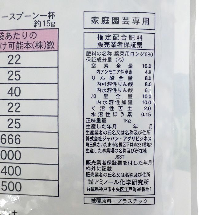 他の画像を見る アミノ酸・腐植酸配合 野菜元肥 家庭菜園 ガーデニング タキイ種苗 葉菜用 有機入りロング肥料 16-8-10-2 内容量1kg ホウ素入り 販売価格 ¥ 1,080 税込 カートに入れる お気に入りに登録する (0)